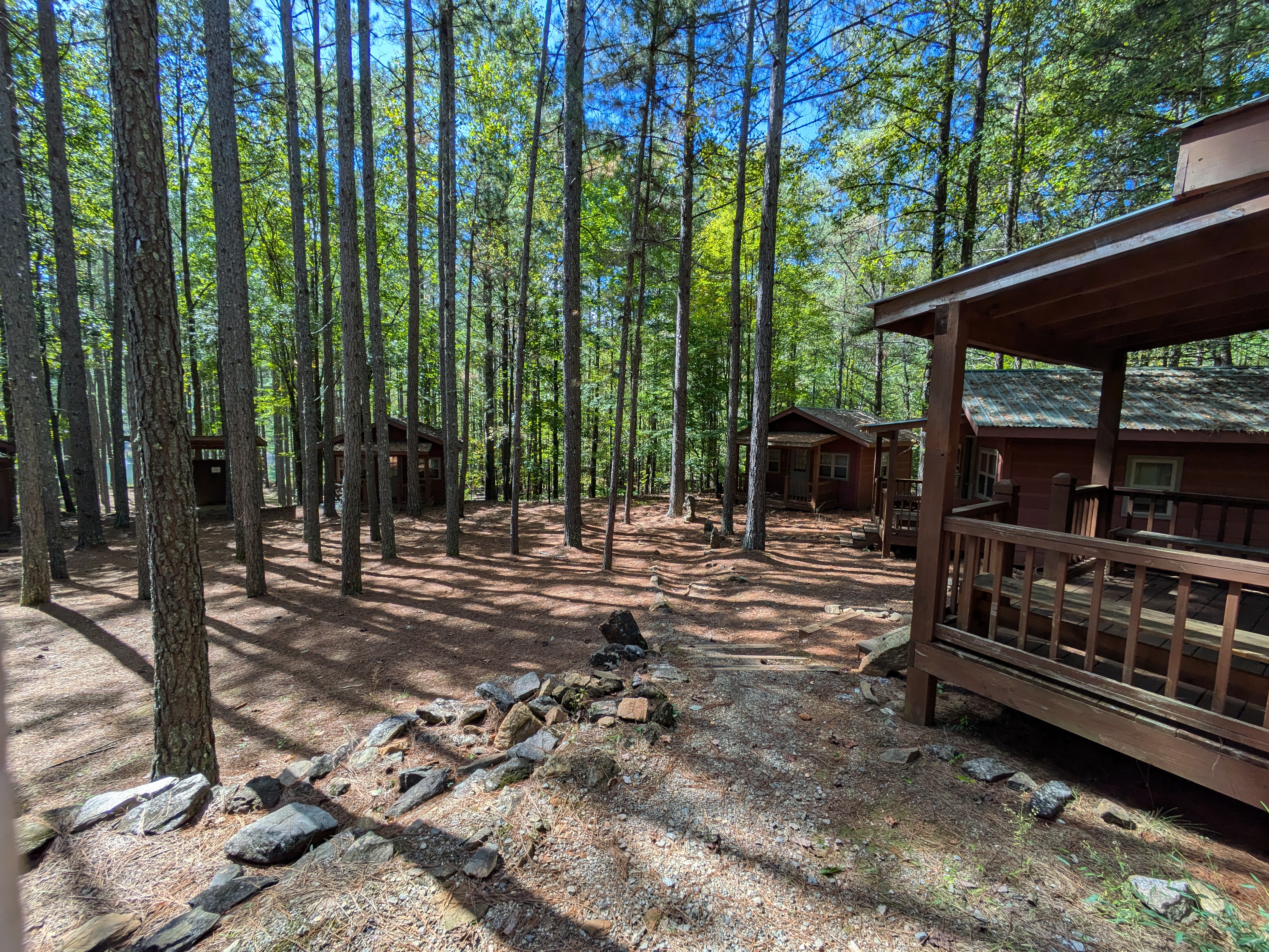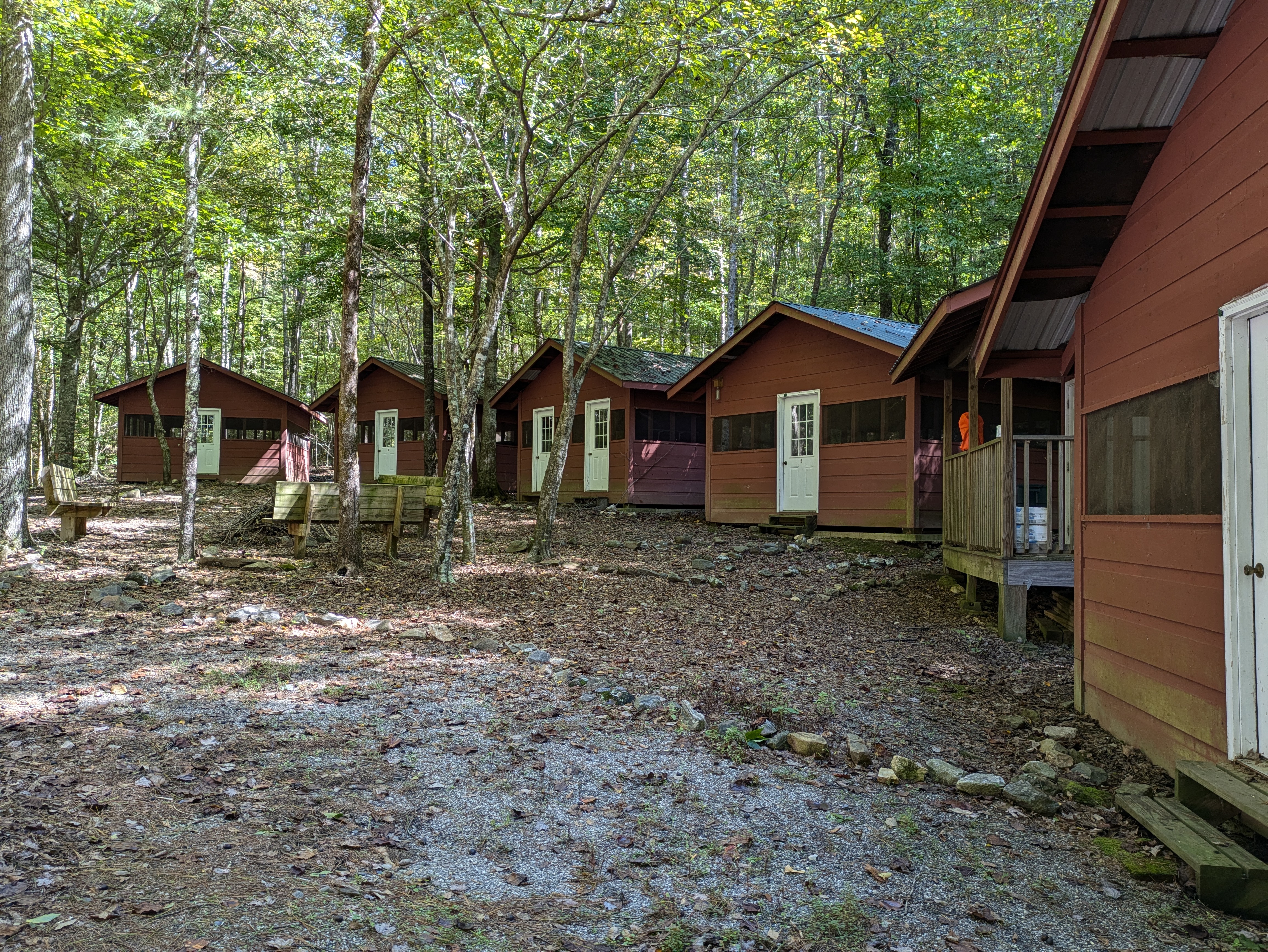 These two cabin groups offer a charming rustic experience, embracing the natural beauty of the surroundings. While they do not have electrical power, each cabin is equipped with screened windows and shutters to facilitate optimal ventilation. Guests will have access to running water and three toilets for convenience. Additionally, a small fire pit is available, providing a perfect setting for evening gatherings under the stars. Group 2 offers accommodations for up to 39 and Group 4 offers 34.