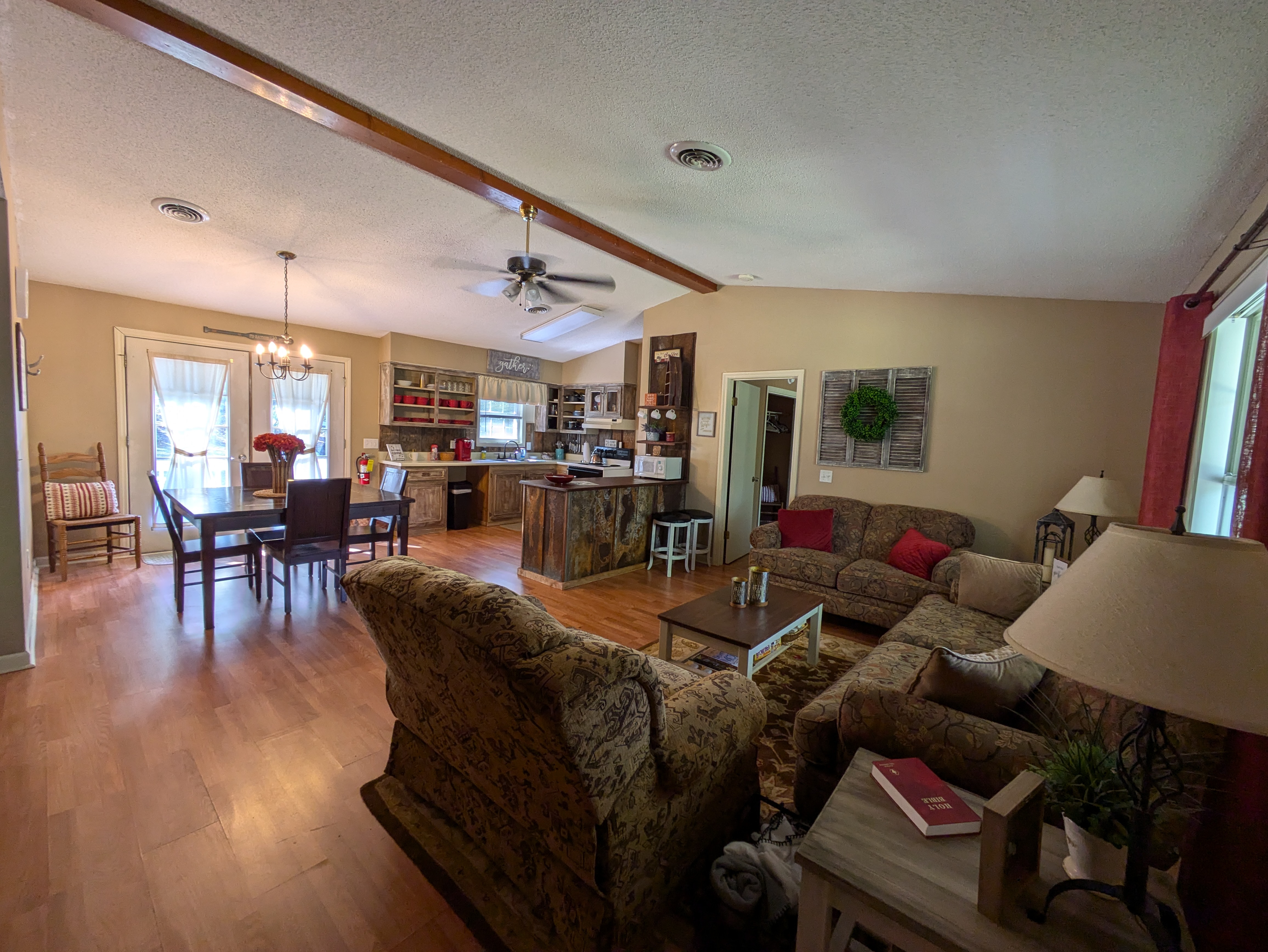 Our Retreat House is thoughtfully designed with adult retreats in mind. With 5 spacious bedrooms, 6 showers, and 4 toilets, your group will have plenty of room to relax and refresh. The expansive living area features an oversized table, perfect for Bible studies, group discussions, or quiet reflection. Surrounded by nature's beauty, this is the ideal space for deep spiritual growth, connection, and renewal.