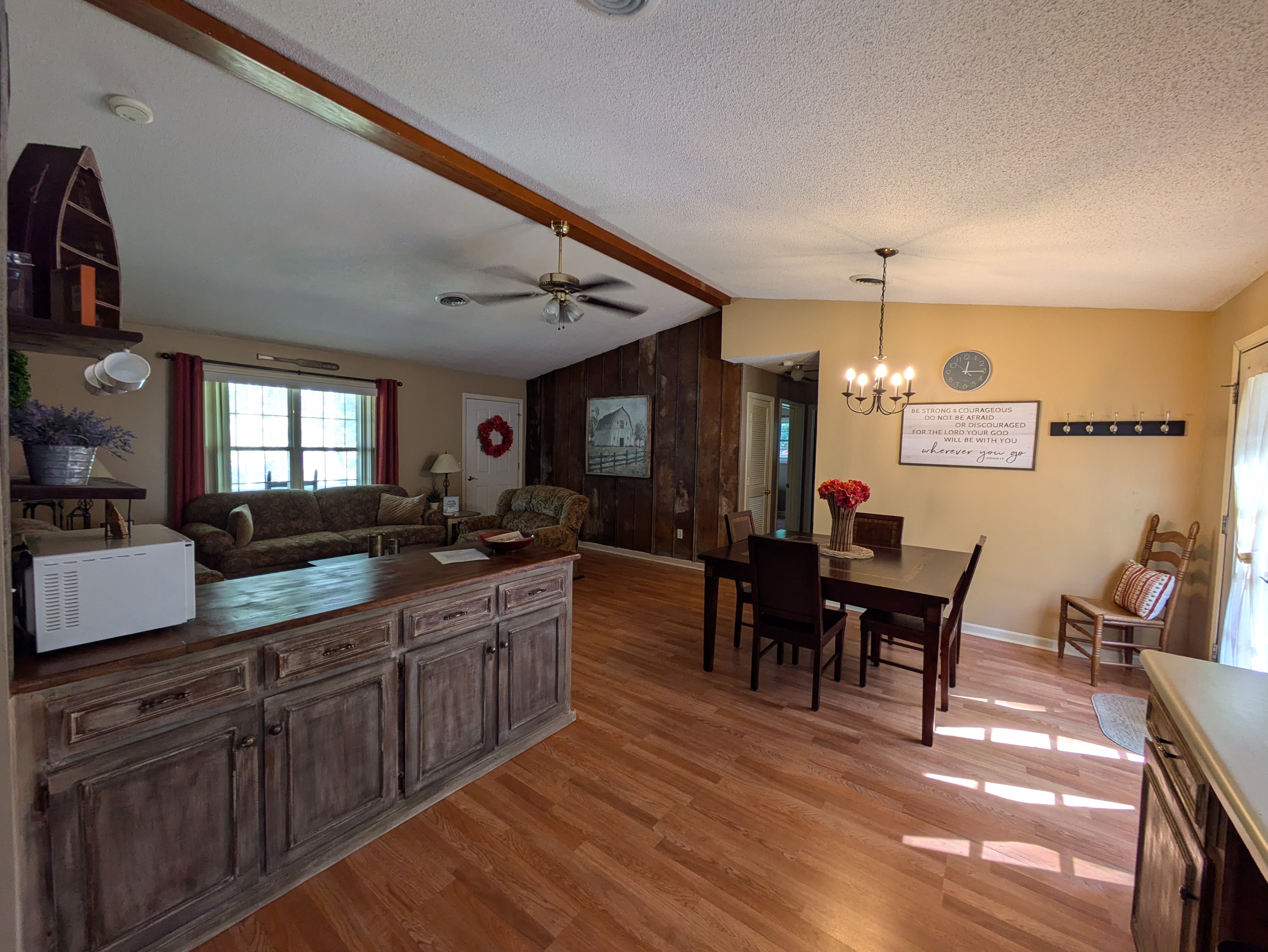 Guests will find two full bathrooms for convenience, along with a fully stocked kitchen, providing all the essential items needed for cooking. Additional amenities include a washer and dryer for laundry needs and plenty of parking available for guests. The Lake House is available for rent year-round, making it the perfect getaway in every season.
